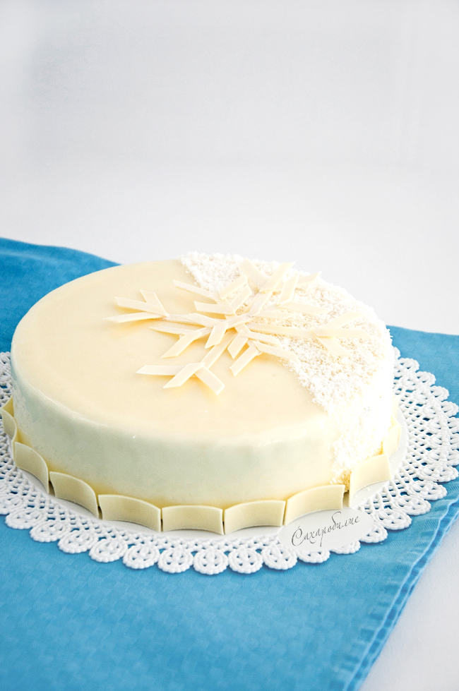 кроется торт с двумя муссами один шоколадный другой кокосовый и